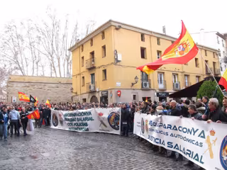 Durante la ruidosa protesta se han gritado consignas como "Mismo trabajo, mismo salario", "Equiparación" o "JUSAPOL", y se ha leído un manifiesto reivindicativo.