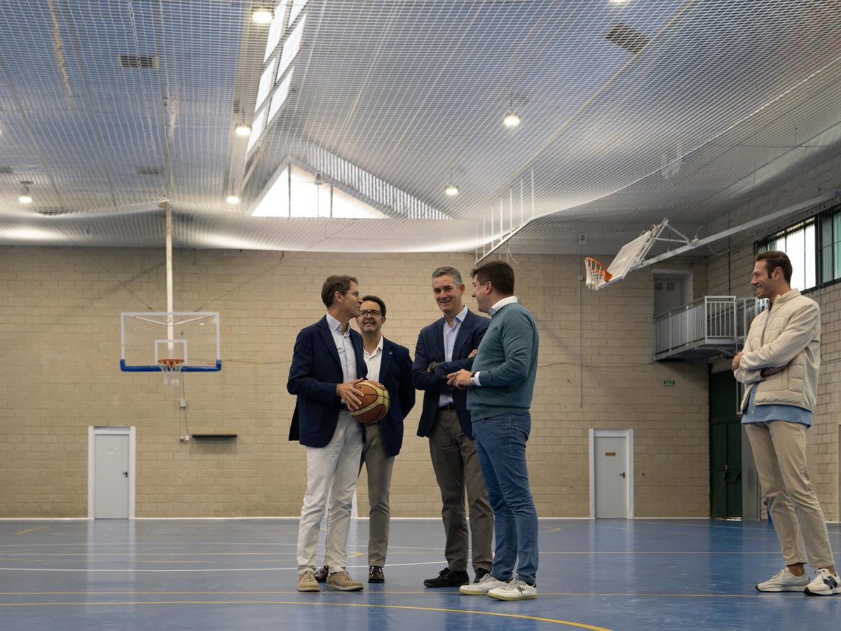 El presidente del Gobierno de La Rioja, Gonzalo Capellán, junto al director general de Deporte y Juventud, Diego Azcona, y el alcalde de Santo Domingo de la Calzada, Raúl Riaño, ha visitado el resultado de las obras realizadas en el polideportivo municipal Valle del Oja de la localidad tras afrontar la reparación de su cubierta.
