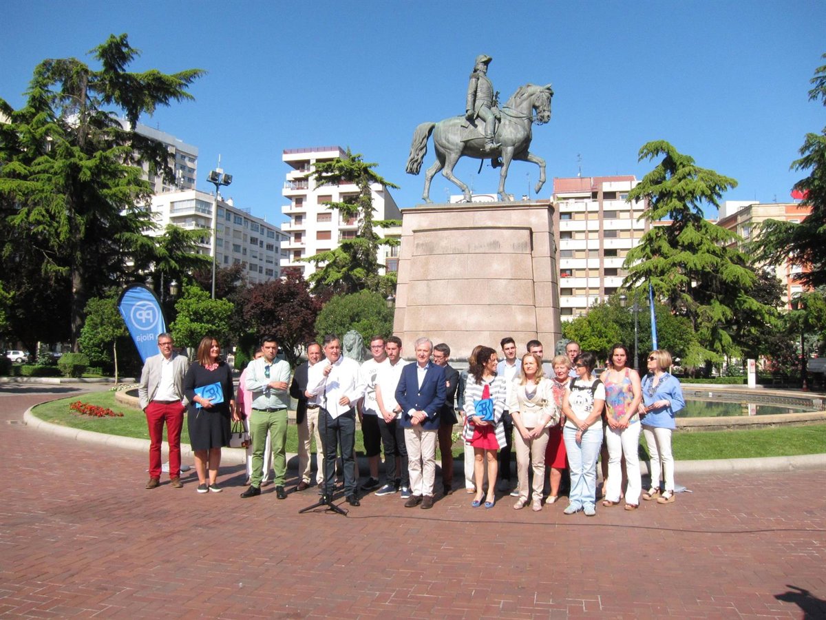 Pérez Pastor, acompañado del resto de candidatos riojanos al Congreso y al Senado en las próximas elecciones generales del 26 de junio, así como por el presidente de los 'populares' riojanos, Pedro Sanz, y simpatizantes y afiliados del partido, ha leído, junto a la estatua de Espartero en 'El Espolón, un 'Manifiesto por La Rioja'.