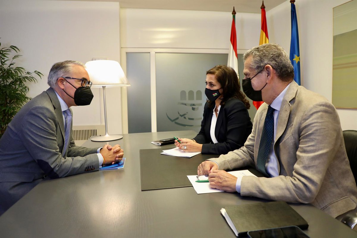 El portavoz del PP, Jesus Ángel Garrido, se reúne con el consejero de Hacienda, Celso González, y la presidenta del Gobierno, Concha Andreu - GOBIERNO DE LA RIOJA