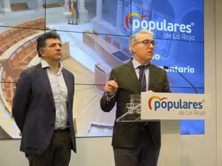 El portavoz del Grupo Popular, Jesús Ángel Garrido, ha ofrecido hoy una rueda de prensa junto al diputado Carlos Cuevas, quien ha lamentado que desde 2018 la inversión recogida en los Presupuestos de La Rioja descienda un ocho por ciento.