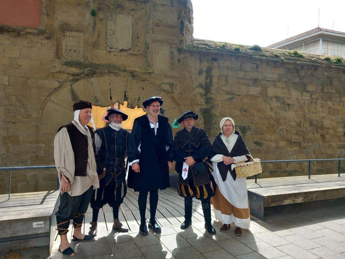 Antoñanzas ha comparecido esta mañana ante los medios de comunicación frente a la puerta del Revellín y junto a un grupo de recreacionistas, entre los que se encuentra Luis Ángel García, también miembro de la candidatura logroñesa de PR+E. Todos han comparecido ataviados con trajes medievales, de los que habitualmente lucen durante las fiestas de San Bernabé y otras celebraciones populares.