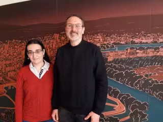 El concejal del Partido Riojano (PR+) en el Ayuntamiento de Logroño, Rubén Antoñanzas, acompañado por una vecina de la calle Duquesa de la Victoria, Beatriz Álvarez, ha presentado este miércoles una propuesta, que va a llevar este jueves al pleno municipal, para que el Consistorio desarrolle un programa educativo que promueva entre las personas que disfrutan del ocio nocturno el respeto al descanso de los vecinos.