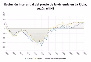 El precio de la vivienda subió en La Rioja un 6,2 por ciento en el primer trimestre en relación al mismo periodo del año anterior, seis décimas menos que la media nacional que se incrementó un 6,8%, según el Índice de Precios de Vivienda (IPV) del Instituto Nacional de Estadística (INE) publicado este viernes.
