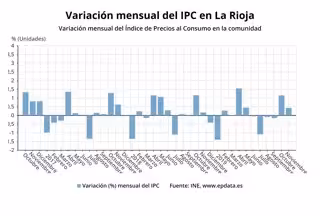 La Rioja, en este caso, con un incremento interanual que se mantiene en el 0,7 por ciento, se coloca tres décimas por encima de la media nacional y en tercera posición entre las comunidades, tras el 0,9 por ciento de Navarra y el 0,8 por ciento del País Vasco.
