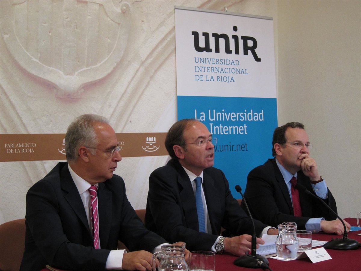 Junto al presidente del Senado han intervenido, en la presentación de libro titulado 'Don Antonio Fontán. El espíritu de la política', el presidente del Parlamento riojano, José Ignacio Ceniceros, el rector de la Universidad Internacional de La Rioja (UNIR), José María Vázquez, el consejero de Presidencia y Justicia, Emilio del Río, además del propio autor del libro, Arturo Moreno.