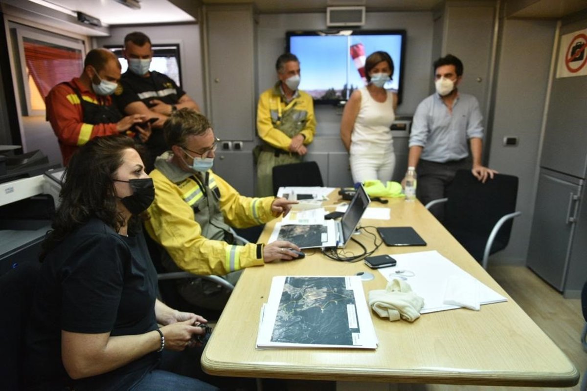 La presidenta del Gobierno de La Rioja, Concha Andreu; el consejero de Sostenibilidad y Transición Ecológica, Álex Dorado Nájera, y la delegada del Gobierno en La Rioja, María Marrodán, se han desplazado esta tarde hasta el Puesto de Mando Avanzado habilitado en Grávalos desde donde han realizado un seguimiento del incendio y han analizado con los técnicos el desarrollo del operativo.