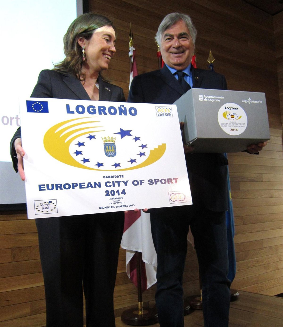El presidente de la Asociación Capital Europea del Deporte (ACES), Gian Francisco Lupatelli, ha calificado este jueves como "buena" la candidatura de Logroño a esta distinción en el año 2014, momentos antes de recibir de forma oficial de manos de la alcaldesa, Cuca Gamarra, la documentación para optar al título, que se otorgará en noviembre.