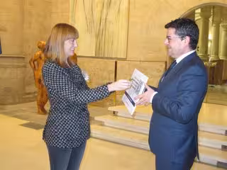 La entrega formal de hoy ha consistido en la entrega, por parte de Domínguez, de un codigo QR, en cartón, a través del cual se accede a la versión digital del documento.