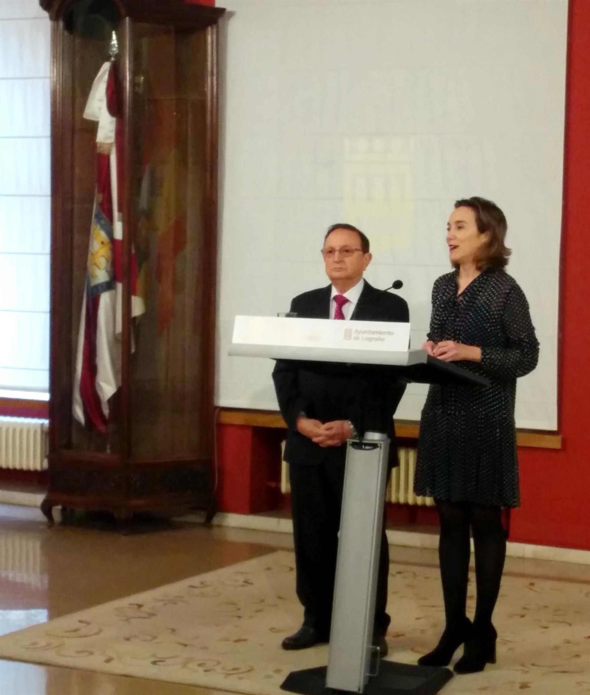 La alcaldesa de Logroño, Cuca Gamarra, acompañada por el presidente de la Cámara de Comercio e Industria de La Rioja, José María Ruiz Alejos, ha presentado este viernes el programa, que se suma así a los Encuentros por la Internacionalización, de los que el año pasado se celebró su cuarta edición, con la ciudad de Londres.