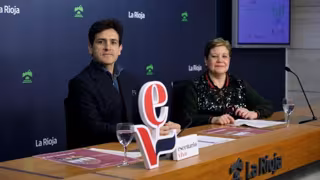 El director general de Cultura, Roberto Iturriaga, y la coordinadora general de la Fundación San Millán, Almudena Martínez, presentan el nuevo ciclo de primavera del festival Escenario Vivo - GOBIERNO RIOJANO