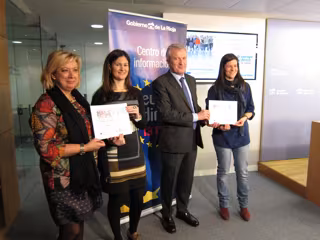 Asimismo, el consejero de Presidencia y Justicia ha anunciado que Ana María y Raquel Pérez Sáinz, dos jóvenes agricultoras riojanas propietarias de la granja Avícola Rioja S.L, son las primeras en recibir la distinción de 'Ciudadano Riojano Europeo', por "su esfuerzo y trabajo" y les ha animado "a seguir trabajando en la difusión de los valores europeos".
