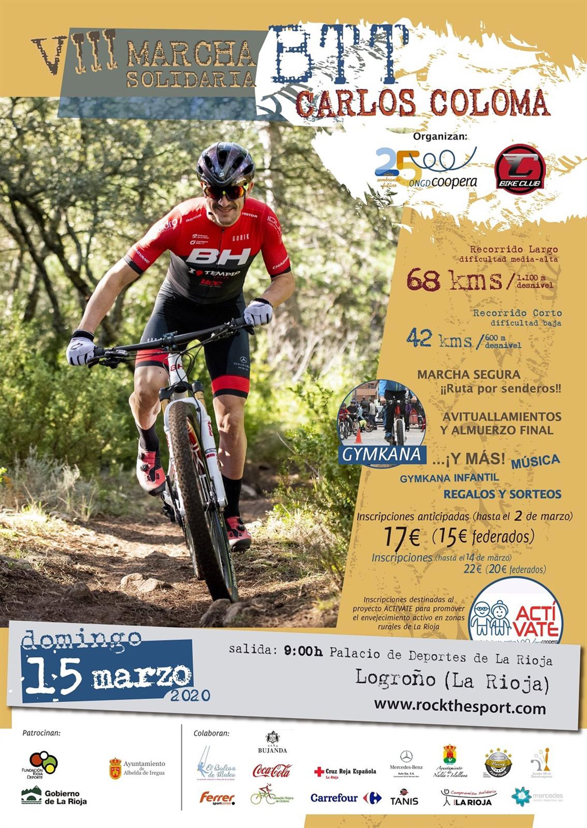 La VIII Marcha BTT Solidaria Carlos Coloma con Coopera tendrá lugar el próximo 15 de marzo. La salida será a las 09,00 horas desde el Palacio de los Deportes de Logroño.