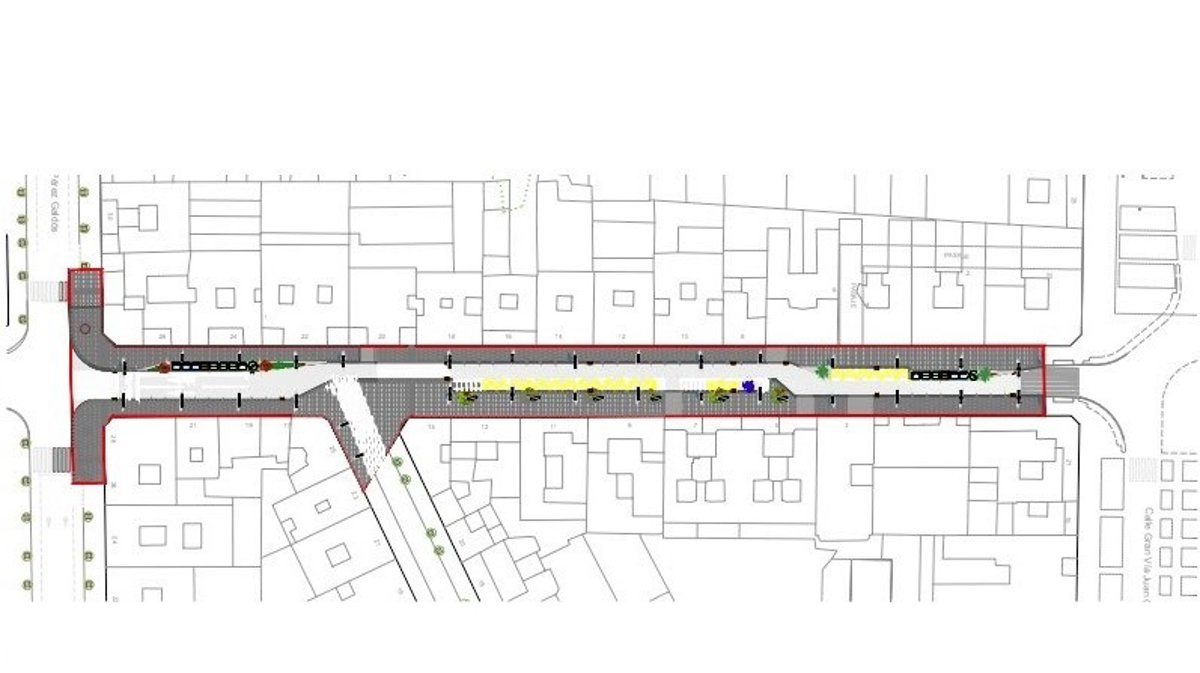 Precisamente, entre los aspectos que se han introducido en el proyecto final, Caballero ha citado "la ampliación de las aceras con Pérez Galdós, los parterres en zonas estanciales, las tres nuevas plazas de aparcamiento, los aparcabicis y aparcamotos o la nivelación del pasaje de Gran Vía con la plataforma única de la calle".
