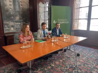 El presidente de CEIP RURAL LA RIOJA, Daniel Osés, ha presentado estas becas junto a la gerente de la entidad, Marta García, y el responsable de Acción Social de CaixaBank en la territorial Ebro, Jorge García.