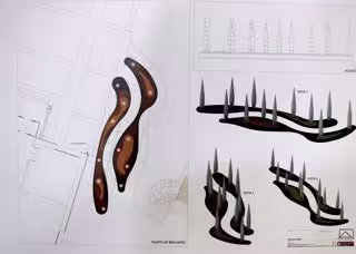 Se trata de un grupo escultórico compuesto por 12 piezas principales, configuradas y elaboradas en alabastro, con una altura máxima de cuatro metros y un diámetro máximo de 45 centímetros. Se dispondrá conformando un paseo con seis piezas a cada lado. Se le dotará de iluminación para que pueda ser contemplada tanto de día como de noche.