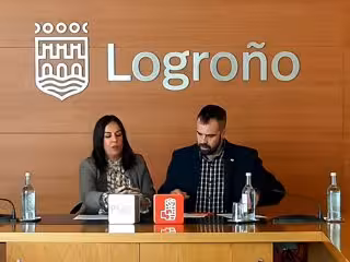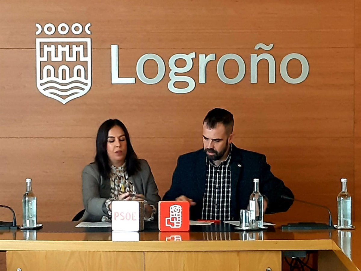 Esmeralda Campos e Iván Reinares en la rueda de prensa - GRUPO PSOE AYUNTAMIENTO DE LOGROÑO
