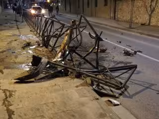 Estado en que quedo la valla contra la que chocó el conductor que entró a 100 kilónetros por hora en Calahorra - AYUNTAMIENTO DE CALAHORRA