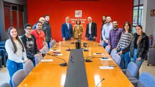 Los diez estudiantes iberoamericanos que se encuentran cursando estudios, durante este curso 2023-2024, gracias al programa de becas de cooperación para el desarrollo, financiado por el Gobierno de La Rioja, que les permite realizar másteres universitarios oficiales en la Universidad de La Rioja, han sido recibidos esta mañana por el consejero de Cultura, Turismo, Deporte y Juventud, José Luis Pérez Pastor, la vicerrectora de Responsabilidad Social Corporativa de la Universidad de La Rioja, Fabiola Portillo Pérez de Viñaspre, y el subdirector general de Cooperación Internacional y Centros en el Exterior del Gobierno de La Rioja, Rodrigo Teijeiro.