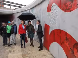 De este planteamiento surgió el protecto "Ruta Mural Jacobea" y los emplazamientos para las dos primeras obras. La primera ya finalizada en la calle Barriocepo y ésta que ha visitado la alcaldesa esta mañana en el paso bajo la circunvalación, en el barrio de El Arco. "Buscaremos más espacios para seguir desarrollando el proyecto", ha afirmado la alcaldesa.