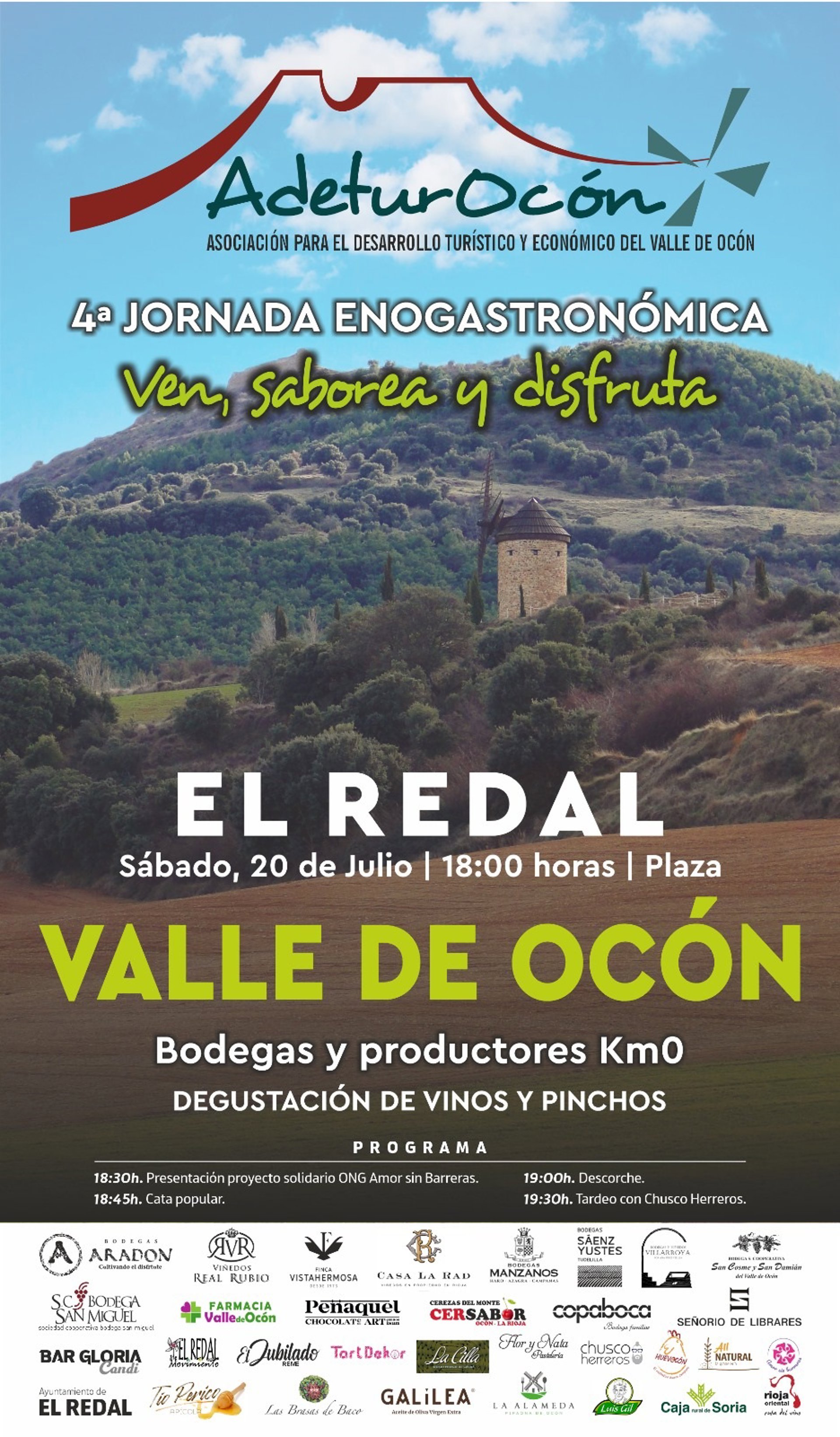 La Asociación para el Desarrollo Turístico y Económico del Valle de Ocón (ADETUROCÓN) y el Ayuntamiento riojano de El Redal organizan este 20 de julio su ya tradicional Jornada Enogastronómica. Bajo el título 'Ven, saborea y disfruta' busca exaltar los productos agroalimentarios de calidad que se elaboran en el Valle de Ocón y en La Rioja Baja.