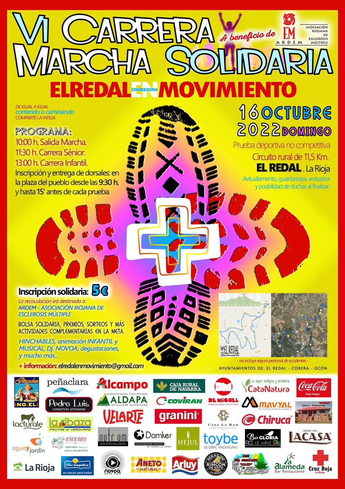 'El Redal en Movimiento' organiza para este domingo, 16 de octubre, la sexta edición de la Carrera-Marcha Solidaria que se celebrará en un circuito rural de 11,5 kilómetros. En esta ocasión, la prueba solidaria destinará los beneficios a ARDEM: Asociación Riojana De Esclerosis Múltiple.