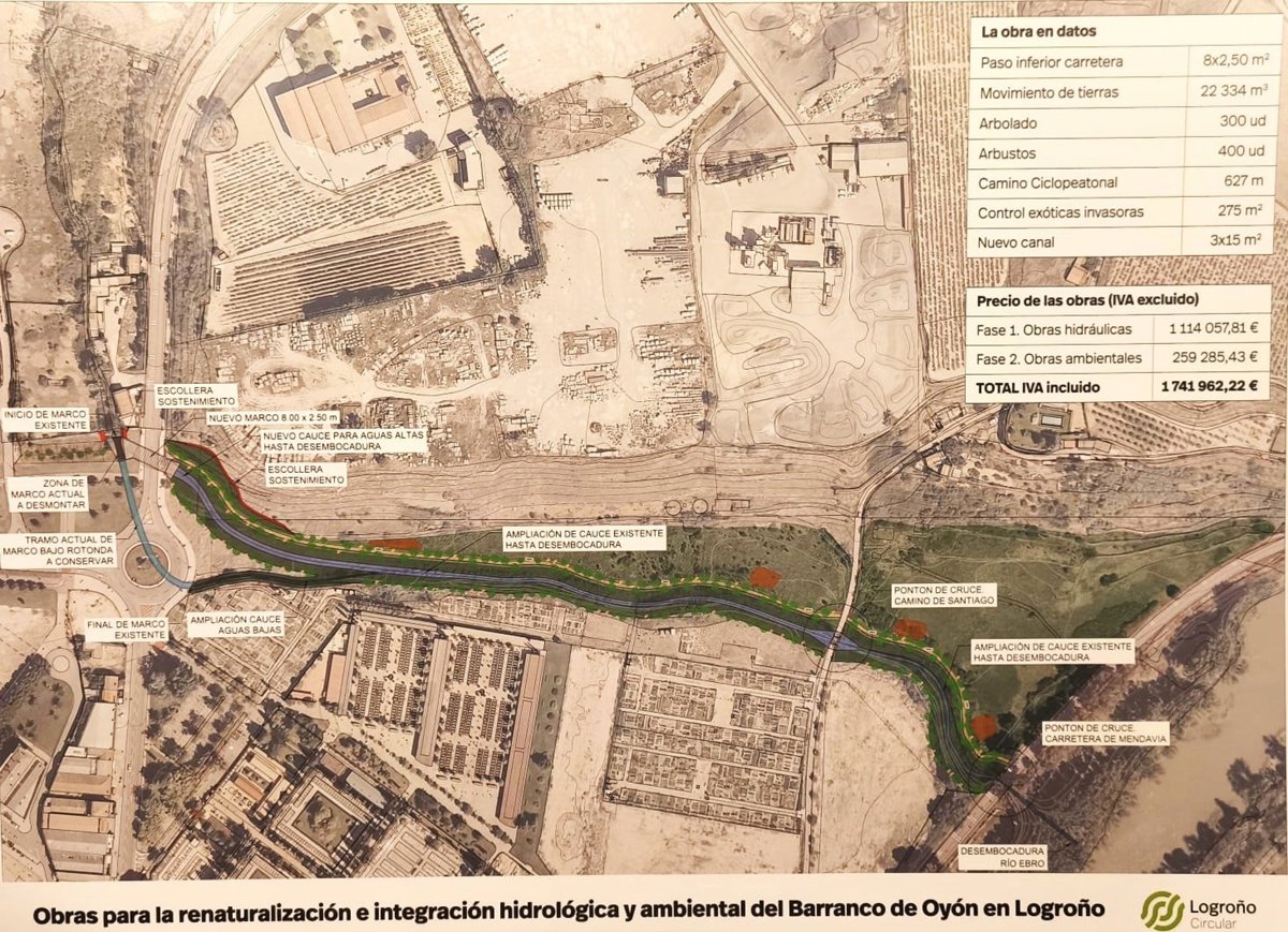 El alcalde de Logroño, Conrado Escobar, ha presentado este lunes el proyecto elaborado para las obras de renaturalización e integración hidrológica y ambiental del barranco de Oyón. Un documento que es el resultado de la asistencia técnica encargada a Nolter Ingeniería y Medio Ambiente y que plantea una inversión concreta de 1.741.962,22 euros en dos fases.