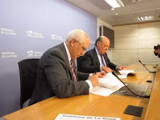 El consejero de Educación, Formación y Empleo, Abel Bayo, y el presidente de la Federación de Empresarios de La Rioja, Jaime García Calzada, han renovado esta mañana el convenio para desarrollar proyectos de Formación Profesional Dual en La Rioja durante 2016. El acuerdo garantiza la realización de estos estudios a 105 alumnos, de los ocho ciclos formativos, en 75 empresas.