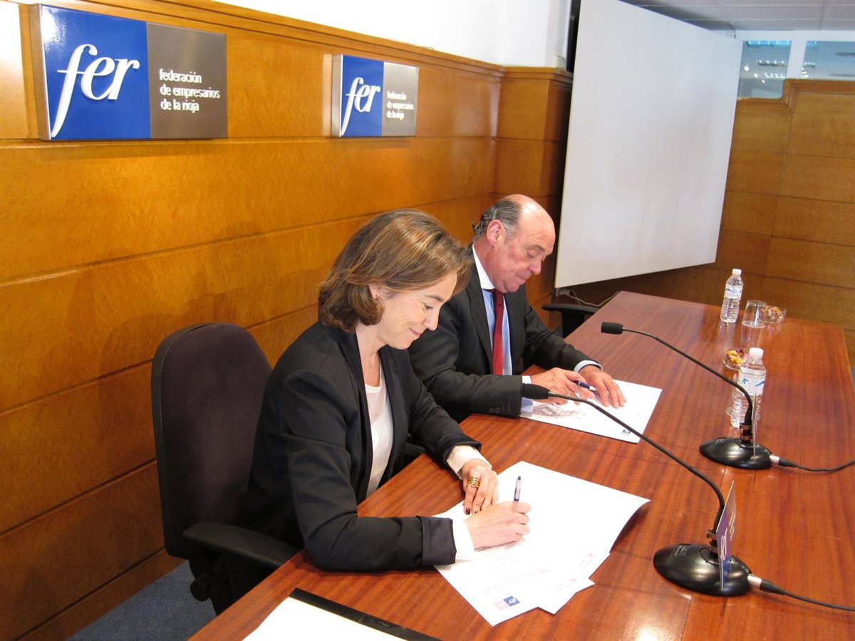 La alcaldesa de Logroño, Cuca Gamarra, y el presidente de la Federación de Empresarios de La Rioja (FER), Jaime García-Calzada, han renovado esta mañana el convenio para la Oficina para el Desarrollo Económico de Logroño, ubicada en las instalaciones de la patronal riojana.