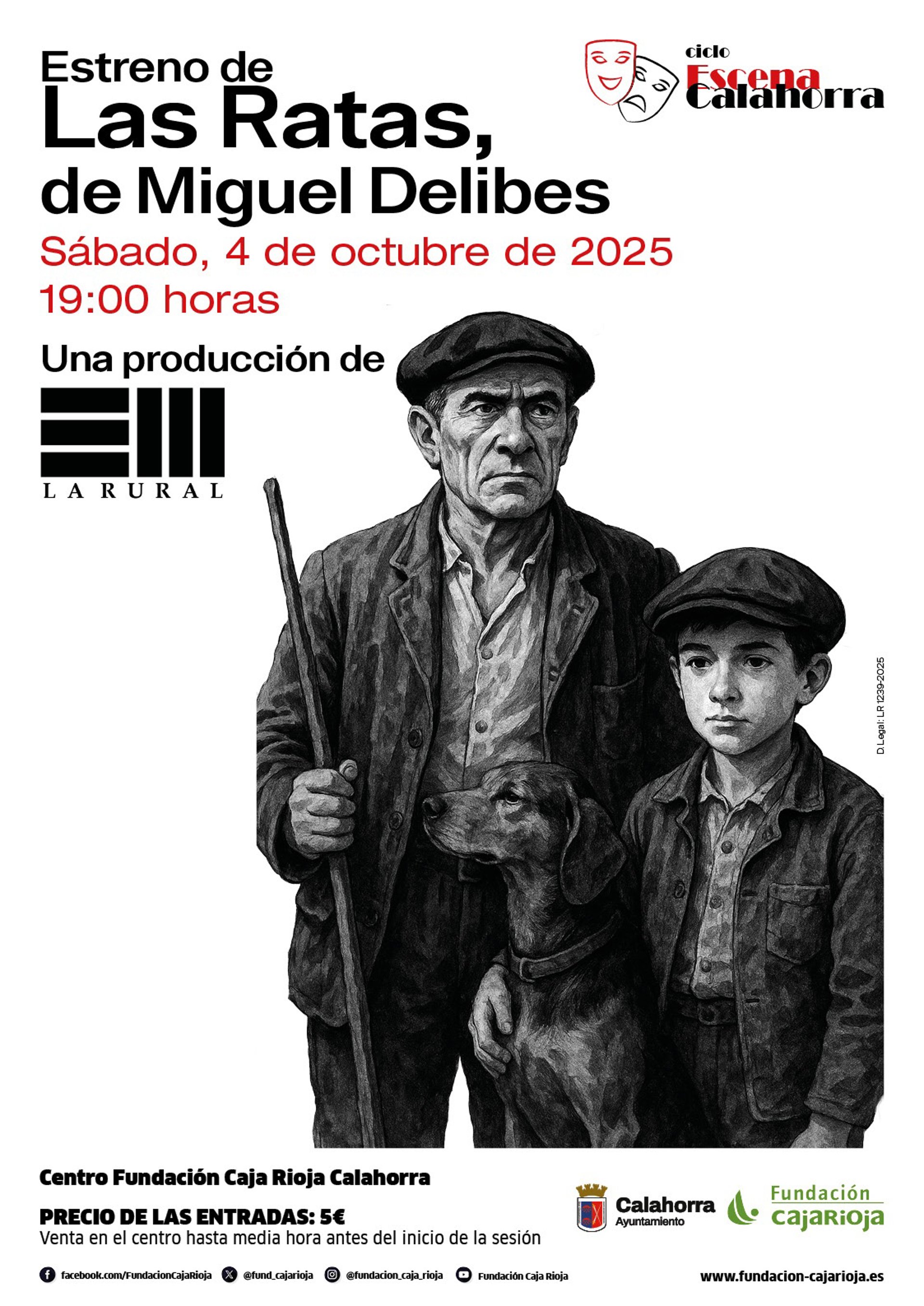Este sábado tendrá lugar la representación de 'Las ratas' en el Centro Fundación Caja Rioja Calahorra a cargo de La Rural, dentro del ciclo 'Escena Calahorra', formado por una obra de teatro, un concurso de monólogos y un 'poetry slam'. Las entradas pueden adquirirse en el Centro de la Fundación Caja Rioja.