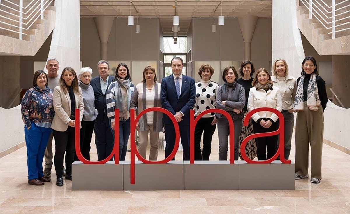 Asistentes a la reunión, con el rector Ramón Gonzalo, en la UPNA. - UPNA