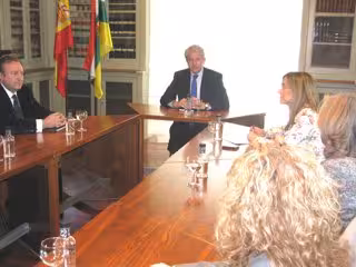 El consejero de Presidencia y Justicia, Emilio del Río, se ha reunido esta tarde, en la Biblioteca de Presidencia, con una representación de la Unión Progresista de Secretarios Judiciales en La Rioja, encabezada por su delegado territorial, José Miguel de Frutos Vinuesa, que ha resultado elegido recientemente. En la reunión también ha tomado parte la directora general de Justicia e Interior, Cristina Maiso.