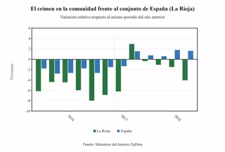 Por su parte, la tasa interanual de criminalidad se sitúo en las 24,7 infracciones penales por cada mil habitantes, por lo que La Rioja se consolida como la tercera región más segura de España.