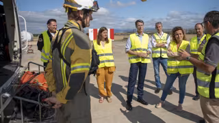 Tras conocer de primera mano las instalaciones y asistir a una demostración de embarque en la aeronave por parte de la Cuadrilla de Acción Rápida en Incendios Forestales CARIF, el presidente del Ejecutivo riojano, Gonzalo Capellán, ha querido resaltar "la importante labor que se lleva a cabo por parte del dispositivo y que velan durante todo el año por nuestro rico patrimonio natural, pero en especial en estas fechas de mayor riesgo, en las que más de 300 personas trabajan para responder de inmediato ante cualquier siniestro provocado por el fuego".