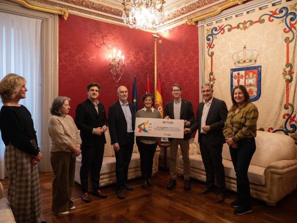 El presidente del Gobierno de La Rioja, Gonzalo Capellán, ha hecho entrega hoy, 13 de febrero, del cheque solidario fruto de la iniciativa 'Actual Solidario' por importe de 17.564,7 euros a los responsables de la Asociación de Familiares y Amigos de Niños con Cáncer de La Rioja (FARO).