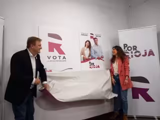 El candidato de Por La Rioja a la Alcaldía de Logroño, Alberto Bretón, y la candidata a la Presidencia, Sonsoles Soriano, en el inicio de la campaña electoral - EUROPA PRESS