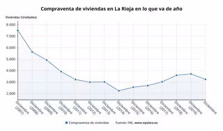 La compraventa de viviendas cayó un -12,7% en 2020 en La Rioja, el séptimo descenso más atenuado de las comunidades, todas en negativo, al registrar 3.244 operaciones, según ha informado este lunes el Instituto Nacional de Estadística (INE).