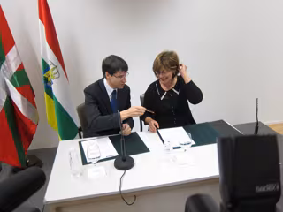 El consejero de Educación, Cultura y Turismo del Gobierno de La Rioja, Gonzalo Capellán, y la consejera de Cultura del Gobierno vasco, Blanca Urgell, han firmado esta mañana un protocolo de colaboración que significa uno de los "pasos más importantes" para declarar 'El paisaje cultural del vino y el viñedo de La Rioja y La Rioja' patrimonio de la humanidad, al demostrar el compromiso de ambas administraciones.
