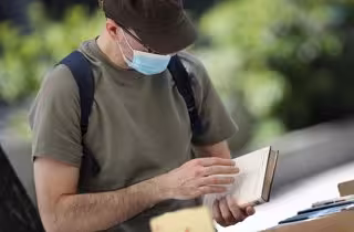 Un hombre protegido con mascarilla observa un libro - Eduardo Parra - Europa Press