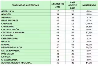 El informe refleja que la media de los periodos de pago de las administraciones autonómicas durante el primer semestre de 2019 se fijaban en 35 días y al cierre de agosto la media se ha incrementado a 40 días, un 14,3% más.
