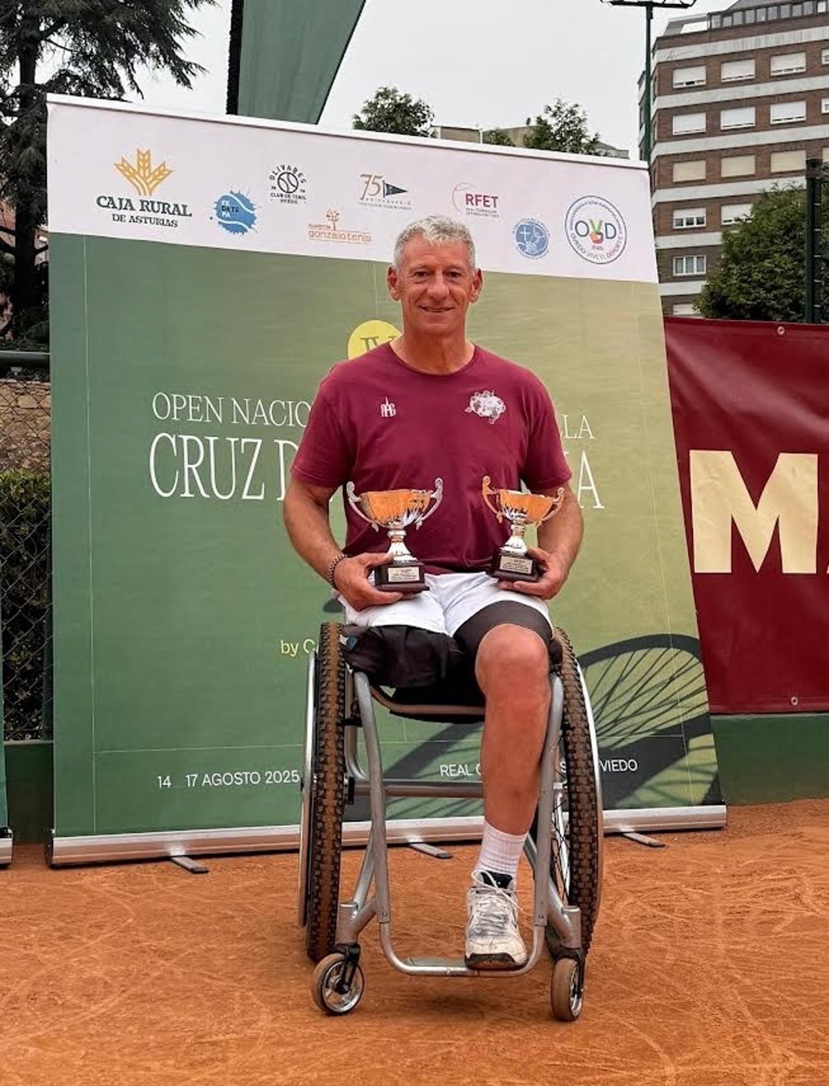 Así el tenista logroñés se ha alzado con un título de esta categoría después de 8 temporadas sin lograrlo y a punto de cumplir 59 años, lo que le convierte en el jugador de más edad en lograr un título individual en la historia del tenis en silla en España.