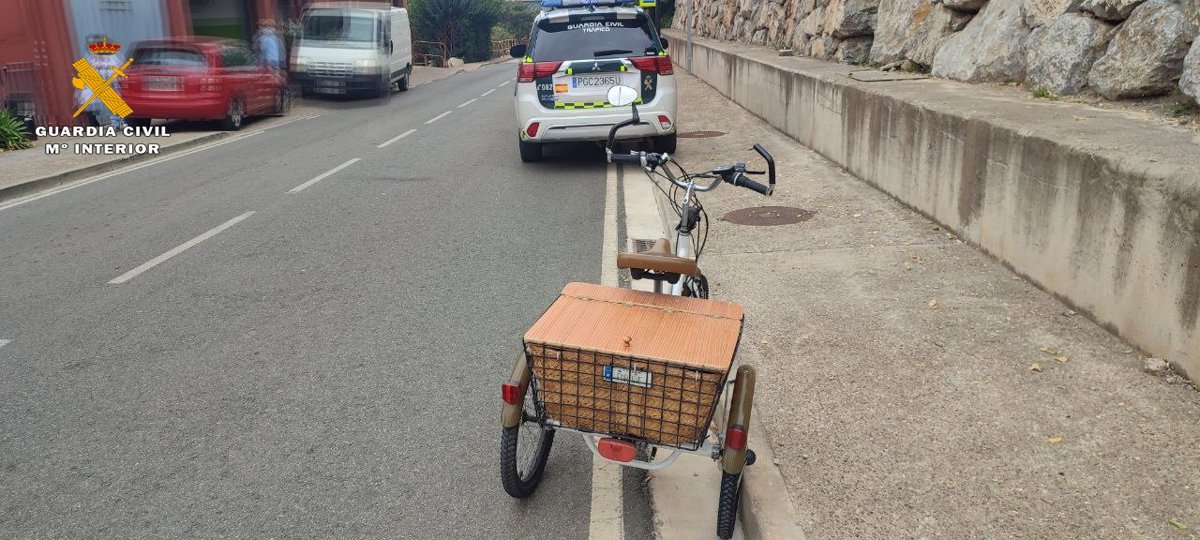 La actuación del Sector de Tráfico se inició durante un servicio preventivo de seguridad vial establecido a la altura del punto kilométrico 8,100, de la LR-255, término municipal de Albelda de Iregua, vía en la que los agentes detectaron un triciclo en el que su conductor se desplazaba de forma inusual, muy deprisa y sin pedalear.