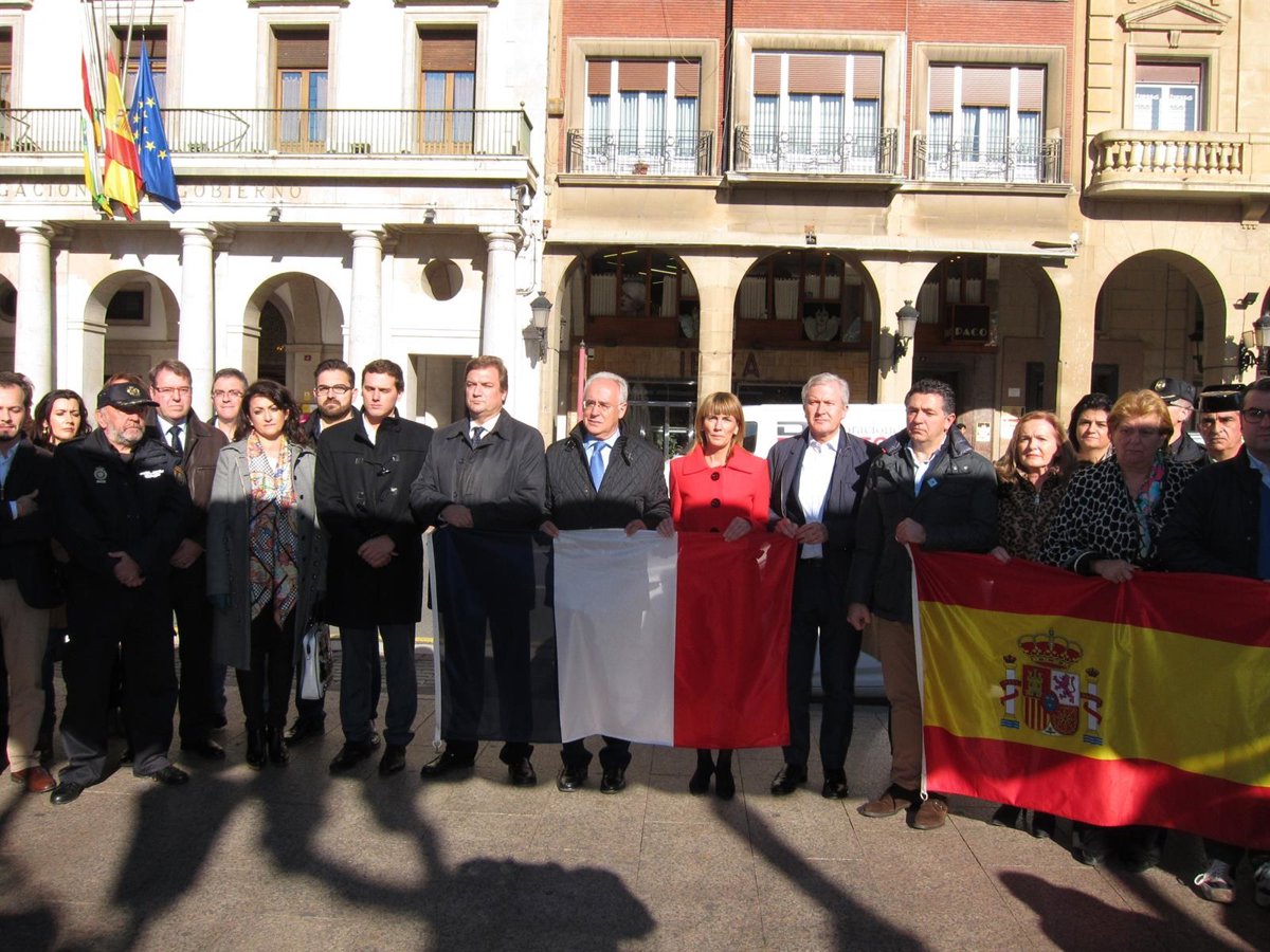 Los concentrados han portado una bandera española y otra francesa. El acto, en el que se ha guardado un minuto de silencio, ha finalizado aplausos de los asistentes.