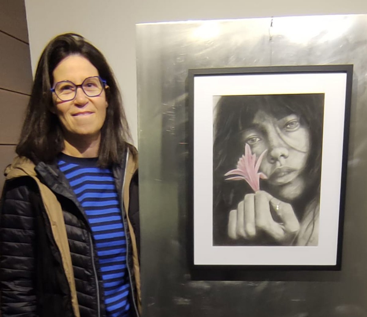 Rosa Murga González protagoniza durante el mes de enero la iniciativa 'Yo expongo' de Fundación Caja Rioja. Su obra, un grafito con aguada titulado 'Cómplice de historias', se cuelga en el Centro Fundación Caja Rioja Gran Vía. 'Yo expongo' es un proyecto que pretende dar a conocer la obra inédita de personas aficionadas al arte que no se dedican profesionalmente a él y que nunca han expuesto de manera individual.