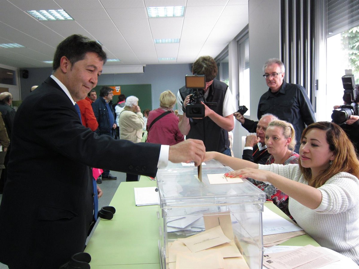 Sáez de Guinoa ha acudido a votar, a las 12,00 horas, junto al candidato al Ayuntamiento de Logroño, José Ángel Argüeso, y de varios miembros de la formación magenta, a su colegio electoral, situado en la Escuela de Idiomas. Ha escogido sus papeletas en el propio colegio electoral.