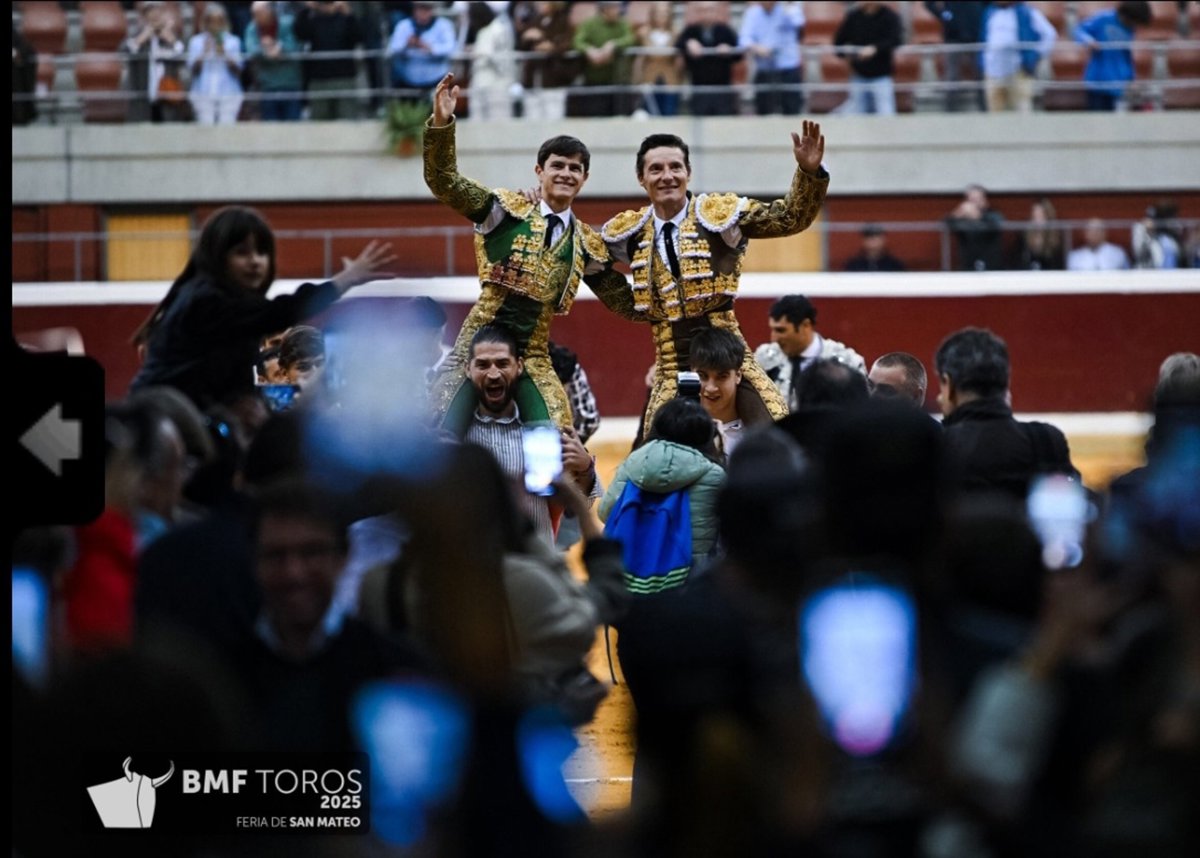 El 'mano a mano' entre Diego Urdiales y Aarón Palacio de la tercera de feria de San Mateo en Logroño ha concluido con los dos a hombros por la puerta grande de 'La Ribera', con una gran corrida de 'Núñez del Cuvillo'. Palacio sustituía a Pablo Aguado, mientras que Roca Rey se ha 'caído del cartel' esta mañana quedando la corrida para el riojano y el aragonés, que han cortado tres orejas cada uno.