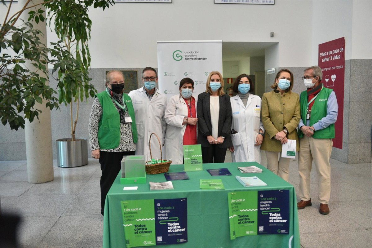 Coincidiendo con la celebración, el próximo 4 de febrero, del Día Mundial de Lucha contra el Cáncer, la consejera de Salud, María Somalo, ha visitado esta mañana la mesa informativa instalada por la AECC en el vestíbulo del Hospital San Pedro, junto al gerente del SERIS, Alberto Lafuente, la jefa de Oncología médica, Martina Alonso, y la presidenta de la Asociación Española contra el Cáncer en La Rioja, Elena Eguizábal.