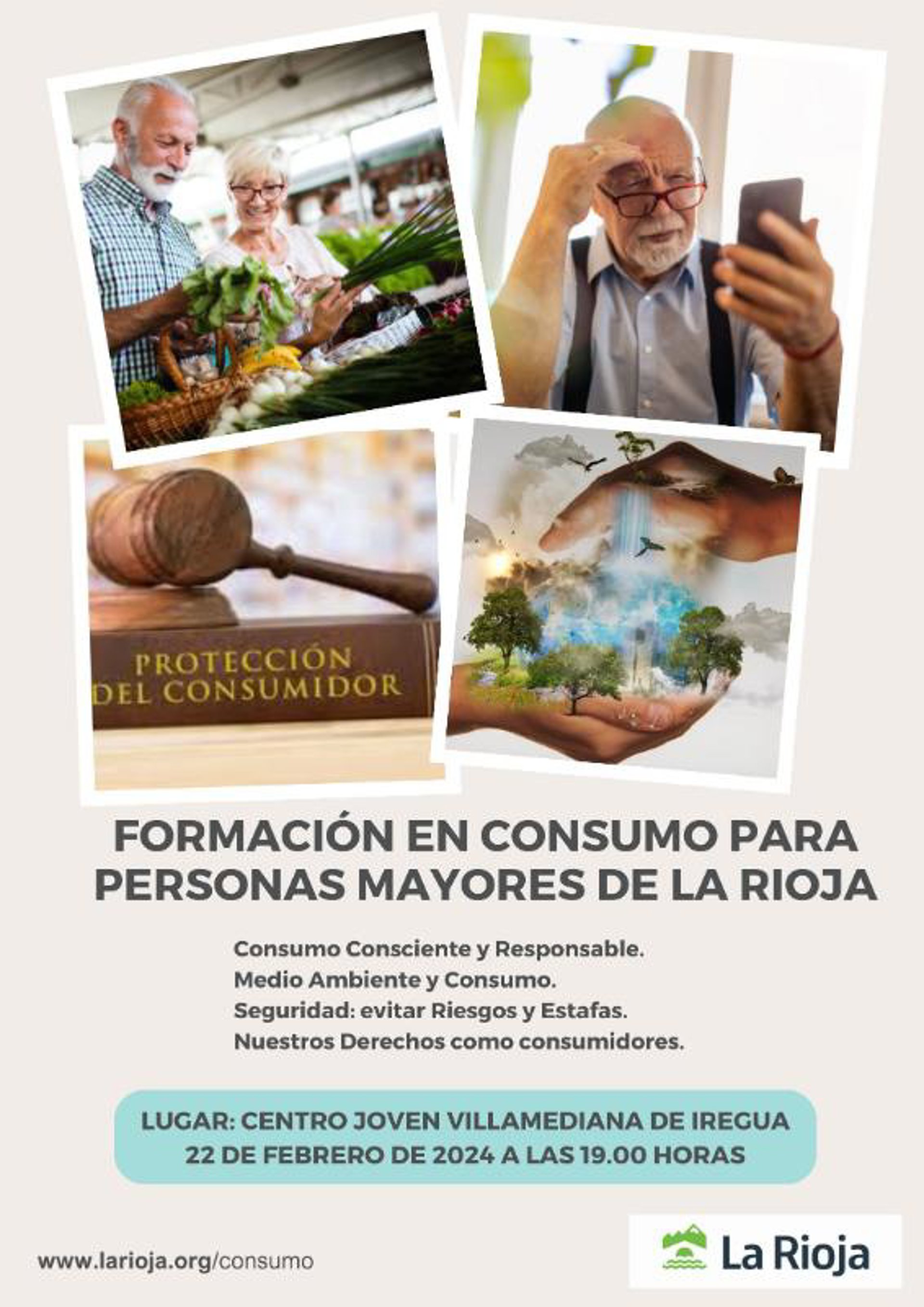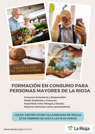 La Consejería de Salud y Políticas Sociales del Gobierno de La Rioja, a través de la Escuela de Consumo de La Rioja con la colaboración de la Dirección General de Dependencia, Discapacidad y Mayores, lanza el Plan de Formación para el Consumo en Personas Mayores: consumo consciente, seguro y responsable.
