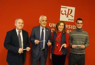 La consejera de Salud de La Rioja, María Martín, el rector de la Universidad de La Rioja, José Arnáez Vadillo, y el presidente del Consejo de Estudiantes, Alberto Espiga, acompañados por el coordinador de Trasplantes de La Rioja, Fernando Martínez Soba, han informado de las iniciativas que se van a llevar a cabo en la Universidad de La Rioja para promover la donación de médula ósea con la intención de llegar a la comunidad educativa (estudiantes de grado, antiguos alumnos, trabajadores y profesorado).