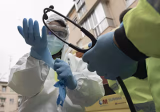 Archivo - Un trabajador de una UVI móvil del SUMMA 112 se pone los guantes durante una jornada de trabajo, en Madrid (España), a 29 de enero de 2021. El Servicio de Urgencia Médica de la Comunidad de Madrid SUMMA 12, tiene la función de atender las urge - Eduardo Parra - Europa Press - Archivo